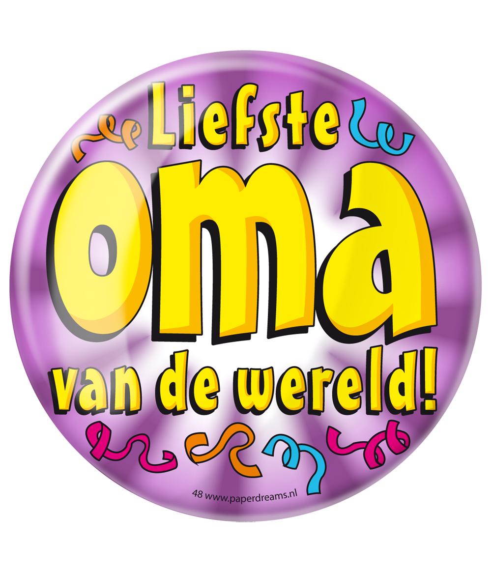 Deze XL button met de tekst “Liefste oma van de wereld” is super leuk om te geven en te krijgen voor bijvoorbeeld moederdag. De XL button is makkelijk aan je kleding vast te maken met het speldje aan de achterkant. Laat zien dat je jarig bent of iets anders te vieren hebt met deze gave button! De XL button heeft een diameter van 10 cm!
